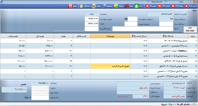 - ثبت چاپ حواله ، رسید انبار ، تایید رسید و حواله.