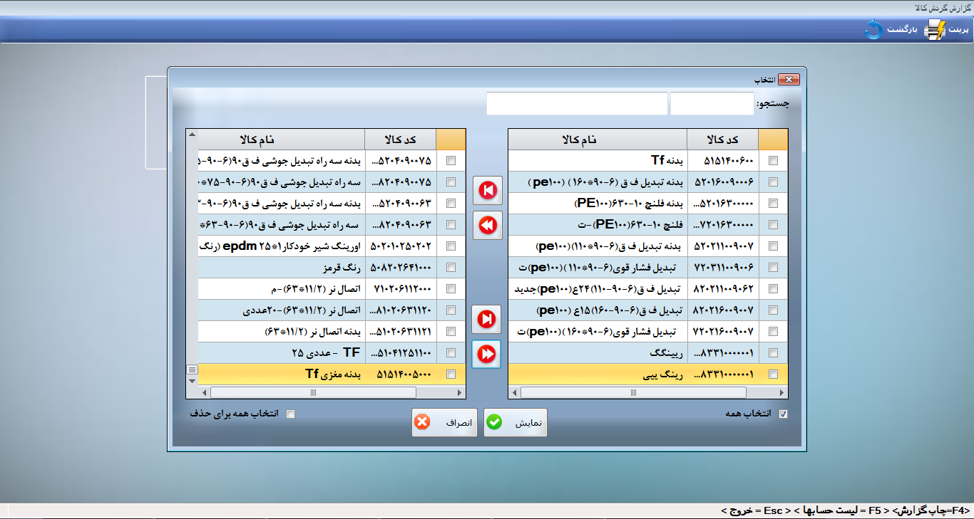 - گزارش ورود و خروج کالا بر اساس مراکز هزینه ، فروشنده، کد کالا و نوع کالا و...