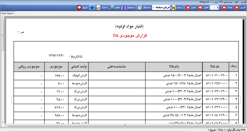 - چاپ برگ شمارش کالا ، جهت انبار گردانی پایان سال.